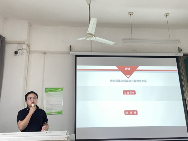 文法新视野(记者:肖小月 摄影:雷颖茵)6月3日14:00在综合楼208教室举办了由字节跳动湖北公共事务总监肖杰老师为我们开展的“新时代的新媒体发展”主题讲座。