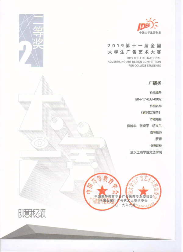 2020年,在第十二届全国大学生广告艺术大赛上,学生共获得国家级二等奖1个,国家级优秀奖3个,省级二等奖1个,省级三等奖5个,省级优秀奖9个。
