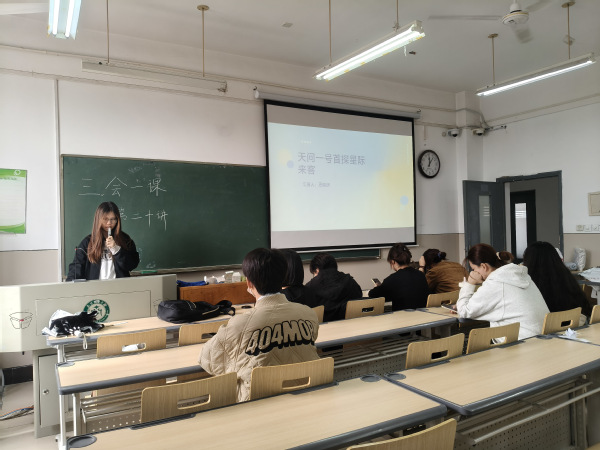 (文法学院讯 王江波)2025年11月19日,bat365平台官网文法学院新闻学学生党支部于外语楼528开展了三会一课,本次会议由夏映昕同志主持,她以天问一号首探星际来客为主题,从星际来客闯入视野、三千万公里的凝视、科学价值与未来指向、中国深空探测新坐标四个方面向大家进行汇报。