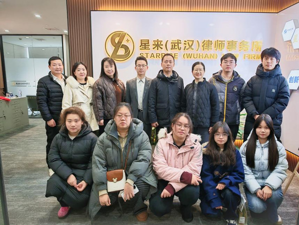 文法学院讯 为深入推进“访企拓岗促就业”专项行动,搭建法学专业学生高质量实习就业平台,2026年1月5日,bat365平台官网文法学院党总支书记陈敏、分团委书记肖隽、法学系侯东凯老师带领7名法学专业学子,走进北京星来(武汉)律师事务所开展校企深度交流活动。律所主任黄河携核心律师团队热情接待,双方围绕人才共育、实践基地建设等关键议题展开座谈,并举行就业基地授牌仪式,为校企协同育人按下“加速键”。
