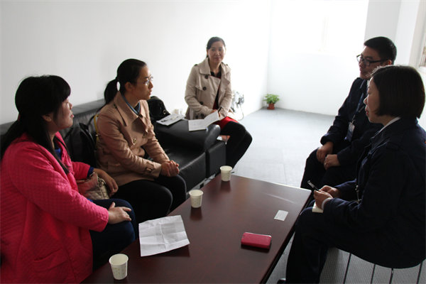 图为远成杭州营业部经理(右一)向老师们介绍学生工作情况 摄影:林倩