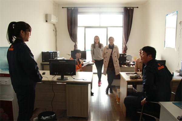 随后,老师们参观了实习生的工作区和就餐区。与当地实习生进行座谈,毕业班辅导员田飞燕详细询问学生的实习和生活情况,耐心讲解他们在毕业实习中可能遇到的问题,并勉励他们珍惜当下的实习机会,把书本知识和社会实践紧密结合起来,积极努力地投入到实习工作中去。