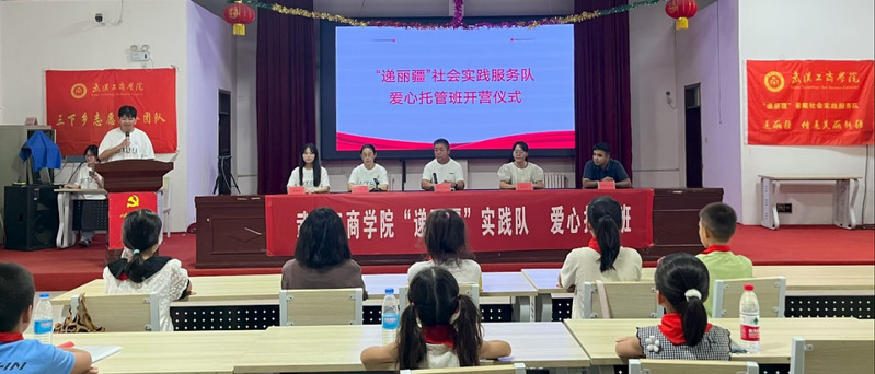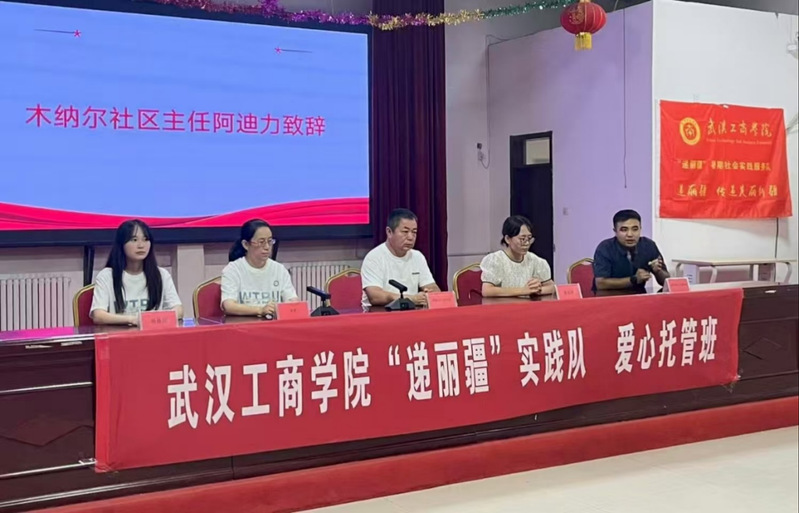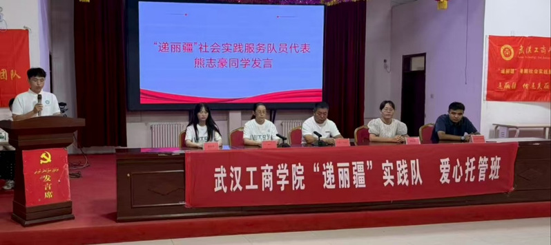 “递丽疆”社会实践服务队员代表熊志豪同学对实践团队指导老师和团队成员做介绍。他表示,全体队员将精心设计课程,以饱满热情和认真作为,完成好每日的托管项目。