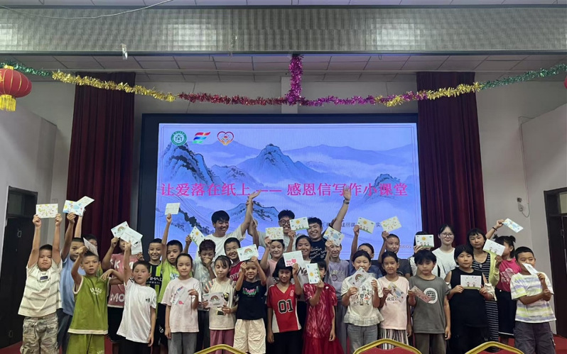 在丰富乡村孩子的暑期生活,提升他们的语言表达能力和情感交流能力,让知识与温情在笔尖流淌,连接起一颗颗纯真的童心与广阔的远方。