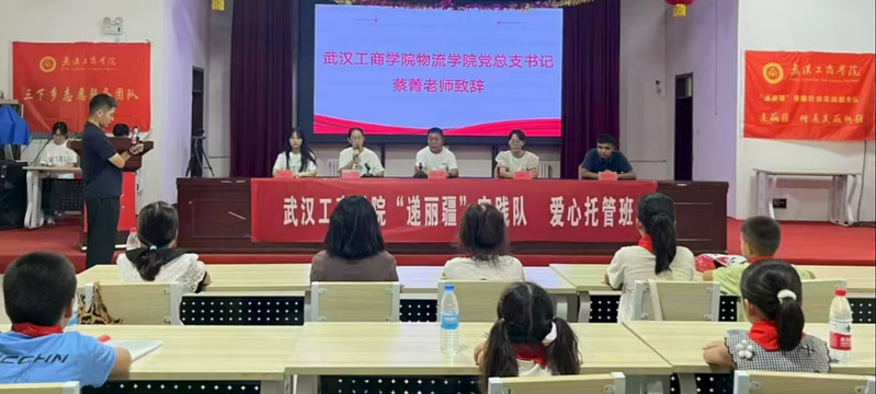 “递丽疆”社会实践服务队员代表熊志豪同学对实践团队指导老师和团队成员做介绍。他表示,全体队员将精心设计课程,以饱满热情和认真作为,完成好每日的托管项目。