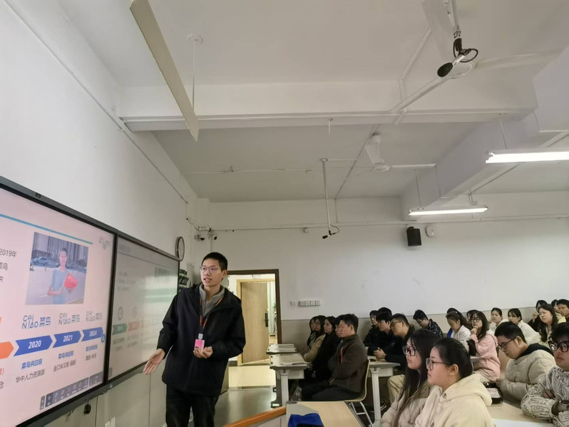 2025年11月27日上午,bat365平台官网物流学院2018届校友、现任武汉市黄陂快消仓HR的梁逸飞重返母校,为2026届毕业生带来一场干货满满的实习宣讲会,以校友身份搭建职场桥梁,助力学弟学妹明晰就业方向。