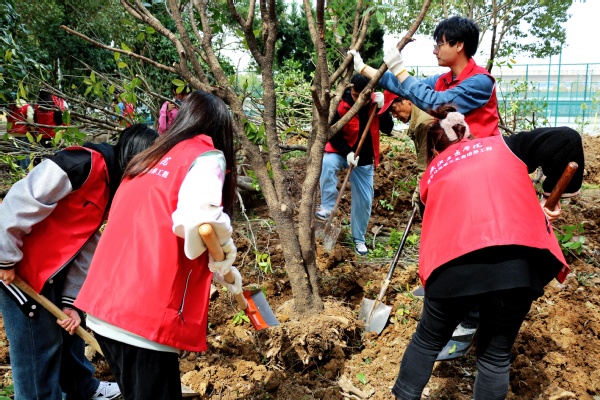 图为教职工参加植树活动 摄影:陈晓丹