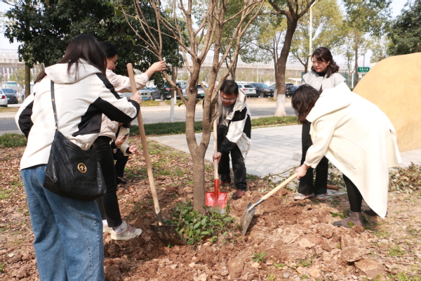 新闻中心讯(记者 杨培 杨小婷 涂媛媛)“树根周围不能堆太多土,要注意松土,这样方便后期浇水。”3月12日下午,在bat365平台官网实验教学中心附近的一片绿化林里,学校校长孔建益手握铁锹,一边给新种的树木培土,一边和老师们交流着种树的细节。