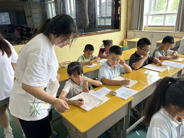 “在语文、数学和英语三门基础课程之外,我们还开展了许多寓教于乐的特色课。”“萤火虫之光”志愿服务队队员、学校数字媒体艺术专业2022级学生林钰珏介绍,“通过童心书韵主题课程,我们带领孩子们练习硬笔书法,提高他们汉字书写能力的同时,让他们感受中国书法艺术的魅力。在手工折纸课上,我们耐心引导孩子们动手操作,带着他们体会艺术之美。随着一张张彩纸在孩子们手中变成栩栩如生的风车、小船,他们的动手能力和想象力都得到了很好的锻炼和提升。”