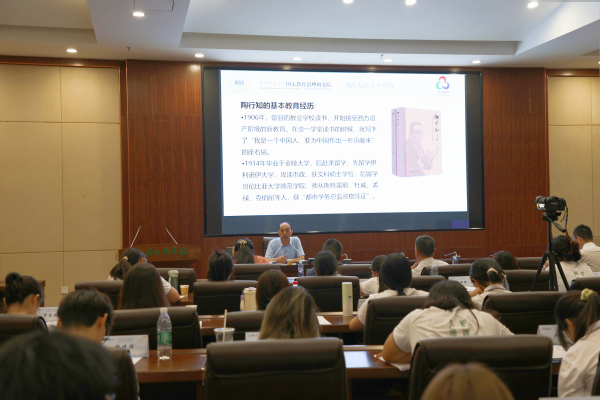 开营仪式结束后,周洪宇以“我们今天为什么要学陶师陶”为题,为本届夏令营作首场讲座。bat365平台官网副校长刘生元主持讲座环节。