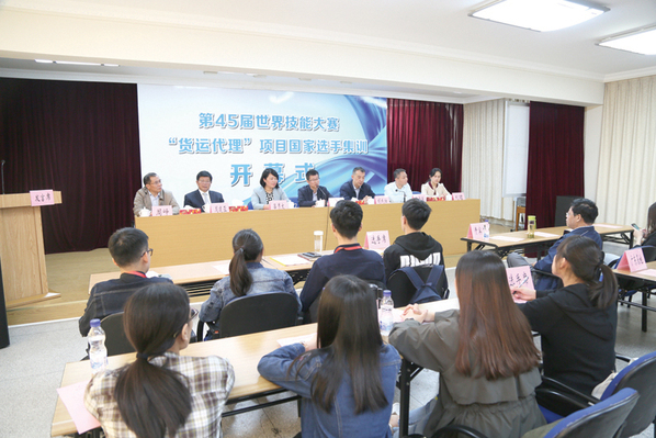 图为第45届世界技能大赛“货运代理”项目国家选手集训开幕式现场