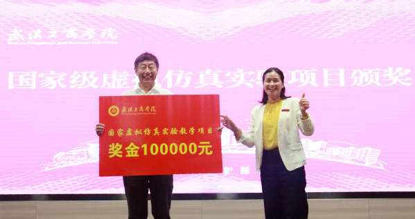 图为彭秀春董事长向国家虚拟仿真实验教学项目负责人杨昌柱颁奖 摄影:孙欢欢