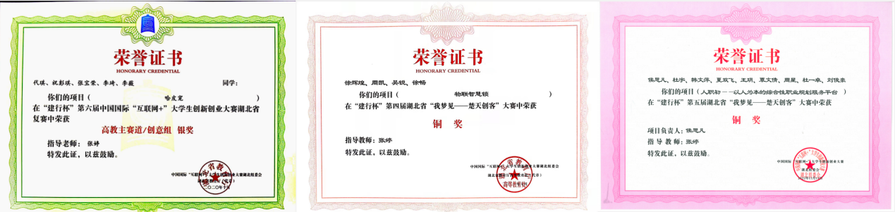 图4-近几年在物联网设计、“互联网+”、“蓝桥杯”程序设计大赛等知名赛事中获得的部分证书