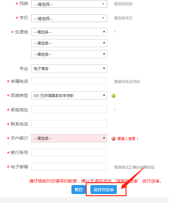 请如实申请,学校会统一向学生资助中心、财务部进行核实