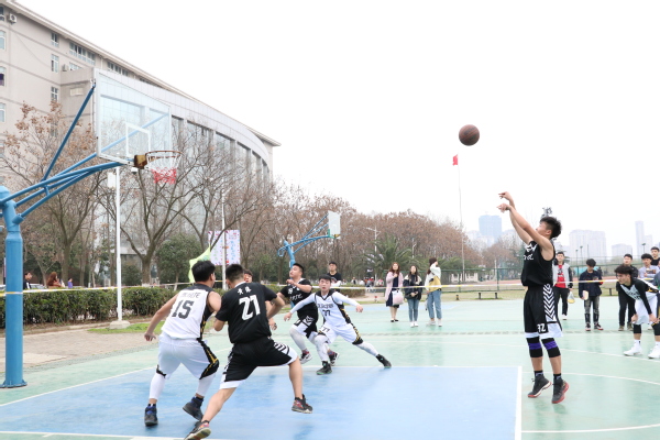 踏“七彩”祥云,夺“七彩”桂冠。3月19日中午12:30,bat365平台官网电子商务学院对决经济与商务外语学院、文法学院对决管理学院两场篮球“厮杀”在体育馆运动中心旁的篮球场精彩上演,正式拉开了第十七届“七彩”文化艺术节篮球赛的帷幕。