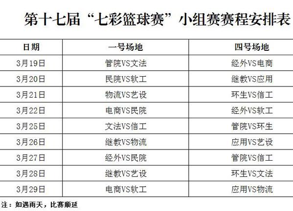 据悉,“七彩”篮球赛为“七彩”文化艺术节体育类子活动,至今已历经17届,比赛旨在丰富学生第二课堂,鼓励广大学生“走出网络,走出寝室,走向球场”,展现工商学子的活力与精神,力争做一个有社会责任、有担当、有团队意识的当代大学生。本次小组循环赛将持续9天,3月20日、21日中午12:30将陆续迎来民族教育学院对决软件工程学院、继续教育学院对决应用技术学院、物流学院对决艺术与设计学院、环境与生物工程学院对决信息工程学院的比赛。