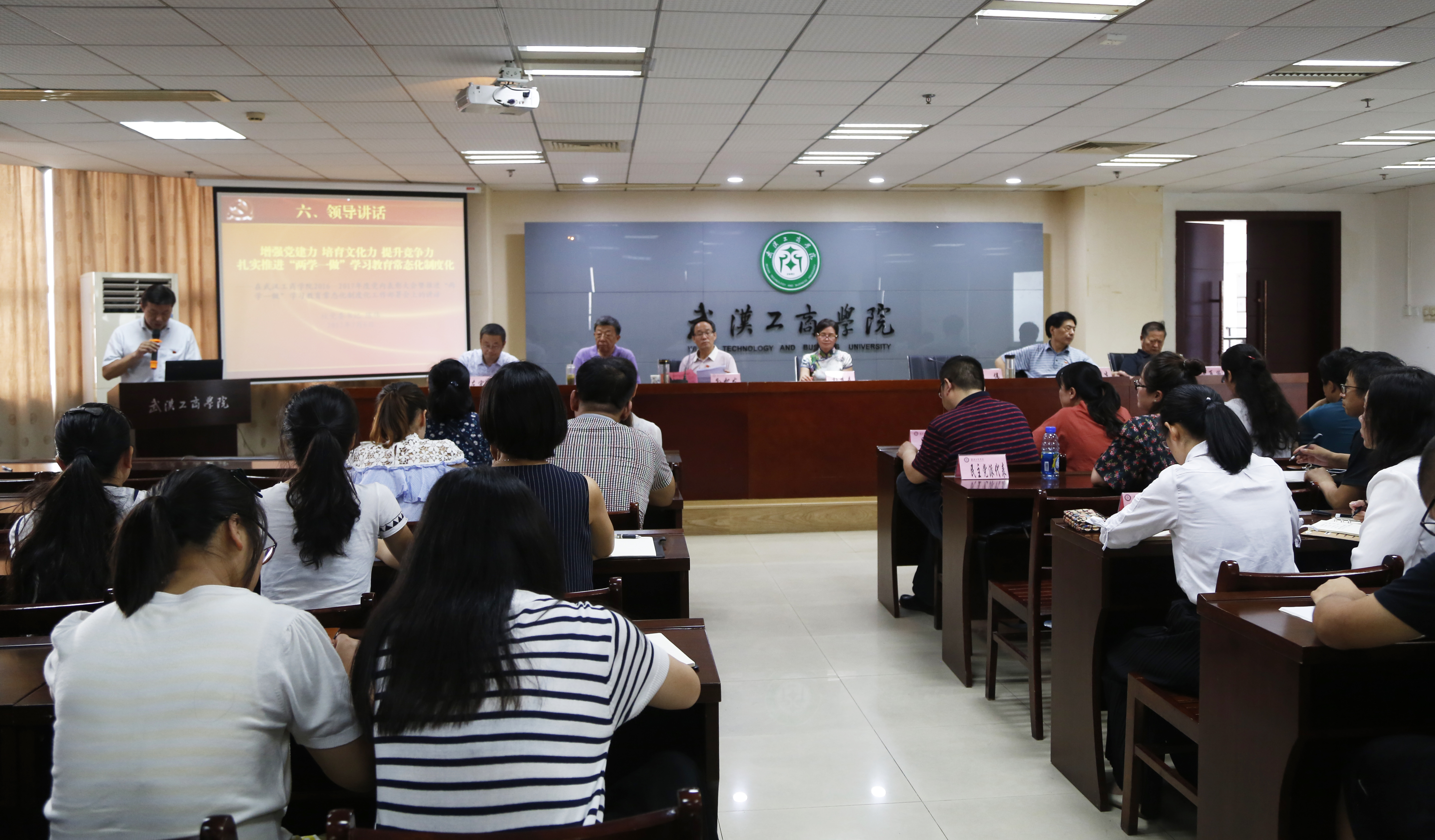 他表示,当前和今后一段时期,学校党委将深入推进“两学一做”学习教育常态化制度化,并提出了学校未来增强党建工作实效的“六力提升”方针:一、全面从严治党,提升学校基层组织战斗力;二、激发活力动力,提升队伍核心竞争力;三、强化校园监督问责,提升反腐倡廉威慑力;四、重人心凝聚,提升校园文化引领力;五、深化责任融入,提升品牌建设影响力;六、突出以人为本,提升群团工作向心力。