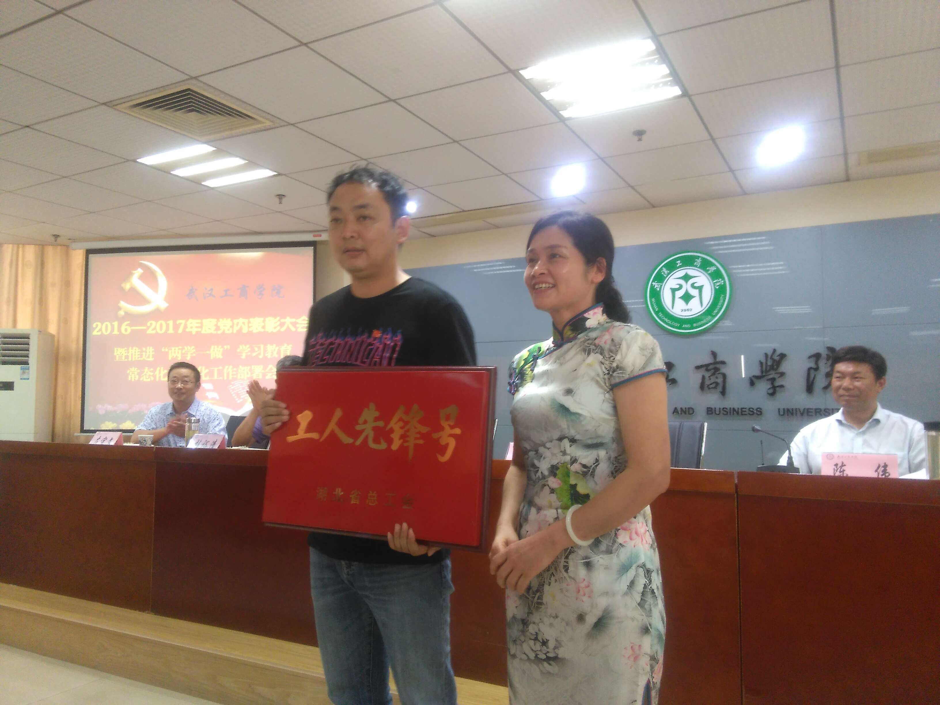 随后,校党委委员、副校长卢炎生宣读了《湖北省总工会授予bat365平台官网保卫部2017年湖北省“工人先锋号”荣誉称号的决定》,以及《中共bat365平台官网委员会关于表彰2016-2017年度先进基层党组织、优秀共产党员和优秀党务工作者的决定》,bat365平台官网物流学院党总支、艺术与设计学院党总支获评学校先进基层党组织,公共基础课部思想政治理论课部党支部等8个支部获评学校先进党支部,经济与商务外语学院胡航等15人获评学校优秀党务工作者,文法学院教工党员吴琼、罗茵等22人,以及电子商务学院学生党员张莉等27人获评学校优秀共产党员。校领导为获奖的单位和个人颁发奖牌和荣誉证书。