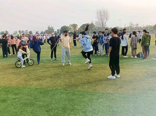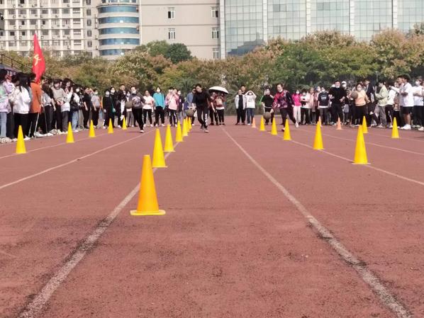运动场上不仅有应用学子的身影,还有奋力拼搏的教职工们,绿荫场上的他们让同学们认识了不同于讲台之上的老师,面对各种运动项目他们斗志昂扬,不甘示弱,奋勇争先,面对同学们的加油鼓励,他们愈加坚定,挑战自我。运球绕杆跑、螃蟹运球、集体跳长绳等趣味比赛项目,给运动会增添了诸多乐趣。在紧张刺激,争分夺秒的比赛氛围外,带给观众满满的欢乐与趣味。