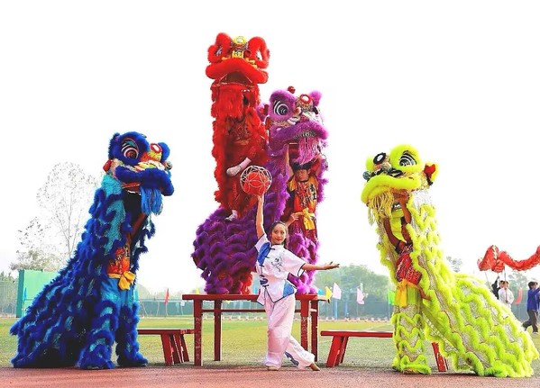 开幕式上,国旗护卫队迈着铿锵有力的步伐,手举耀眼夺目的五星红旗正步走来,运动员们个个气势轩昂以最饱满的姿态从主席台经过,别具匠心的队列表演,灵活多变的龙狮表演,色彩缤纷的气球和五颜六色的礼花齐绽空中。远远看去,赛场上一片朝气蓬勃之景。