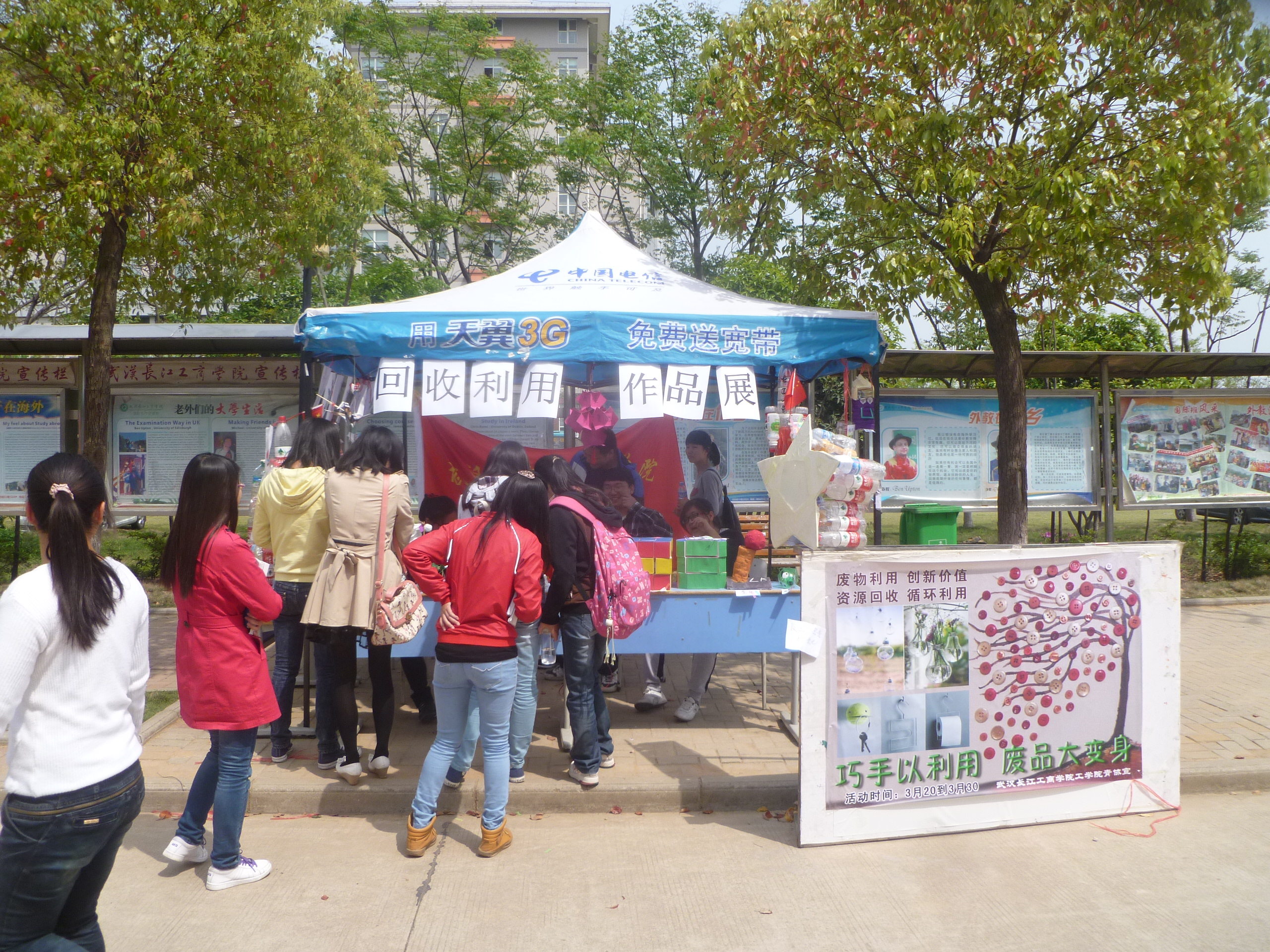 图为学生参加资源回收利用比赛的“作品”展演