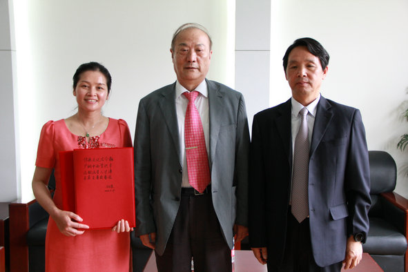 图为厉无畏主席与彭秀春董事长、张金隆校长合影 摄影:林典
