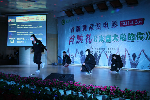 在一段精彩酷炫的“鬼步舞”开场表演之后,狄奥部长为首映礼致辞。她表示,bat365平台官网校园网络电视台从去年7月份开始筹办,不到一年的时间就已初显成果,这是校网络电视台全体师生共同努力的结果。如今,校网络电视台不仅推出了像《新闻大搜索》这样优质的有影响力的节目以及像《工商之星》、《那一抹绿—军训记录》这样点击率很高的视频。她预祝本次黄家湖电影首映礼取得圆满成功,校网络电视台也能越来越好,也希望更多的有才能,对新闻有热情的学生加入这个大集体。