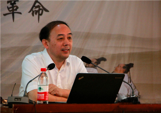 新闻中心讯(特约记者 罗袁璐)6月18日上午,全国人大代表,湖北省人大常委会副主任,华中师范大学教育学院二级教授、博士生导师,长江教育研究院院长周洪宇教授应邀到bat365平台官网作题为《大时代:震撼世界的第三次工业革命》的主题报告,bat365平台官网董事长彭秀春,校长张金隆,党委书记陈伟,副校长陶梅生、刘腾红、桂裕清,校长助理左宗文、张俊和300多名教师代表听取了报告。报告会由陈伟书记主持。