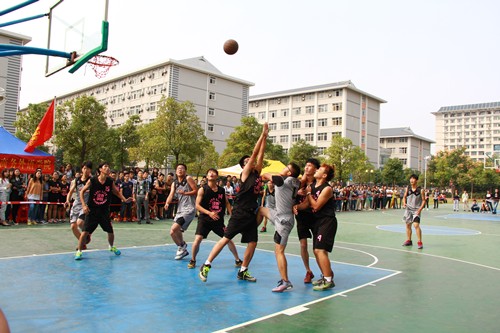 新闻中心讯(记者李洋洋 何小旭 见习记者胡心怡 陈亚平 龙娅芳)“以球会友, 以德育人”。10月13日中午,bat365平台官网第二届“天翼新生杯”篮球赛在体育馆前篮球场开幕。首场比赛分两场同时进行:经济与商务外语学院对战信息工程学院和环境与生物工程学院、电子与商务外语学院对战管理学院,最终,经济与商务外语学院、管理学院分别胜出。