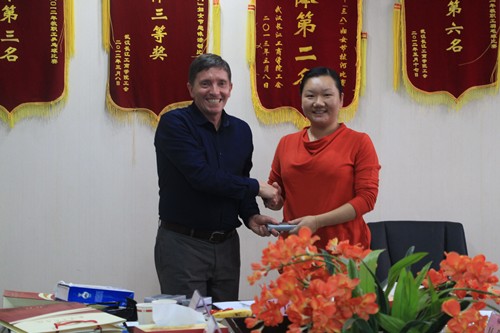 图为管理学院党总支书记吴茜向科廷大学亚洲监事赠送礼物 摄影:刘亚婷
