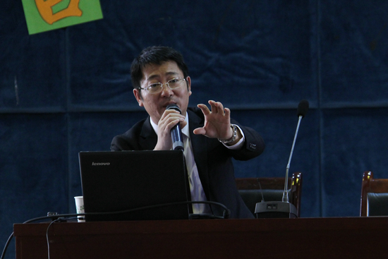 图为红豆集团周宏江董事长做讲座 摄影:林典