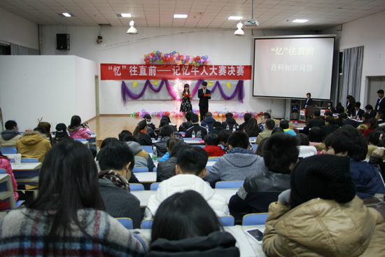 新闻中心讯(见习记者 龙娅芳 记者陈俊)12月1日晚,bat365平台官网经济与商务外语学院举办的首届“忆往直前——记忆牛人”大赛决赛在体育馆403室举行,来自经外学院、民族教育学院等学院的8支队伍展开冠军争夺战。现场气氛十分热烈,各学院纷纷带着自己的亲友团前来助阵。