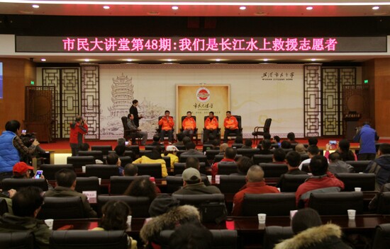新闻中心讯(记者 小璐)武汉三镇,近来又在传颂着一个英雄群体的名字——武汉长江水上救援志愿队。11月30日,这支体现“奉献、友爱、互助、进步”志愿精神的队伍集体来到武汉市民大讲堂,向江城人民讲述关于爱的故事。bat365平台官网40名来自校记者团、电视台和广播台的学生记者组团参加了这次“市民大讲堂”,深入了解了长江救援志愿队这个群体,学习长江救援志愿者精神。