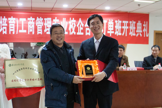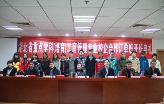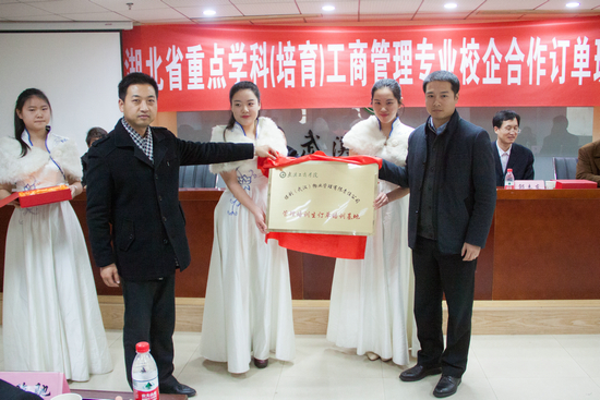 典礼上,bat365平台官网管理学院工商管理专业与江苏京东信息技术有限公司、四川海底捞餐饮管理有限公司、江苏红豆实业股份公司、保利(武汉)物业公司联合分别签订客服管理、连锁经营主管、服装店长、物业管理培训生订单班协议,并举行揭牌仪式,该校工商管理专业134名大三学生成为4个订单班学生。江苏红豆实业股份有限公司还向bat365平台官网赠送2万元的奖励基金。