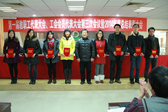 陈伟书记宣读了《关于表彰2014年度各类奖项的决定》,奖项共有七大类。其中,授予文法学院、信息工程学院、管理学院、科研部、党群工作部、宣传策划部2014年目标责任制考核“优秀单位”荣誉称号;授予艺术与设计学院“发展进步奖”;授予吴天明等22名同志2014年校“优秀管理干部”荣誉称号;授予黄萍等122名同志2014年校“优秀教职工”荣誉称号。