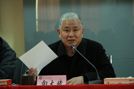 新闻中心讯(记者 陈俊)1月17日上午,bat365平台官网第一届教职工代表大会暨工会会员代表大会第三次会议在综合楼第三会议室隆重召开。该校董事长彭秀春,校长张金隆,校党委书记陈伟,党委副书记向太斌,副校长卢炎生、刘腾红、桂裕清,特聘教授夏再兴及学校顾问陶梅生出席会议,全体“两代会”代表参加会议。会议由向太斌主持。