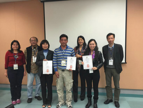 图为台湾景观学术专家教授向高娅娟老师(右二)颁发论文发表证书