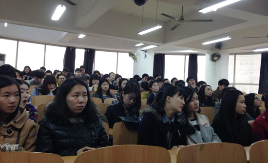 图为电子商务学院的学生正在听代表们分享台湾经历 摄影:马冬玲