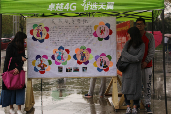 校党委书记陈伟也应邀前来捧场。在民族教育学院展台前,陈伟书记高兴地接过了少数民族学生献给他的哈达,认真欣赏了土家族民歌《六口茶》,爽快地喝下了学生们递过来的马奶酒,并预祝本届七彩文化节取得圆满成功。