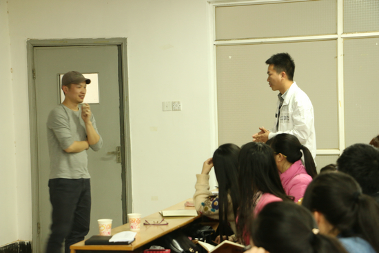 图为黄国策导演与同学交流 摄影:吴建涛