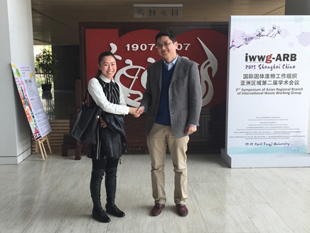 图为高娅娟教师与同济大学AAP项目管理办公室主任宁彦峰教授(右)握手 摄影:王海文