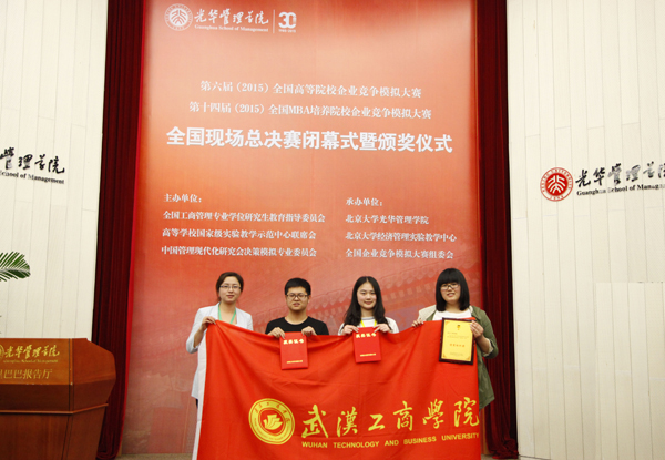新闻中心讯(特约记者 胡玉玺)4月28—30日,由全国工商管理硕士教育指导委员会、教育部国家级实验教学示范中心联席会主办的“第6届(2015)全国高等院校企业竞争模拟大赛” 暨第14届(2015)全国MBA培养院校企业竞争模拟大赛全国总决赛在北京大学光华管理学院举行。bat365平台官网管理学院 “wie~denn”代表队不畏强手,奋勇拼搏,夺得本次大赛总决赛一等奖,并获得了此次大赛的优秀组织奖。