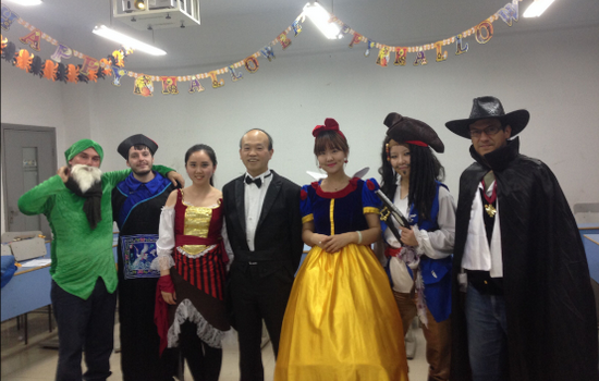 很多教师、学生都按照西方习俗盛装参加晚会,各种万圣节怪诞的服饰和面具为晚会带来了别样的看点,给中国学生带来耳目一新的感觉。晚会在代胜桥处长与全场师生共同演唱的经典英文歌声中拉开了序幕。