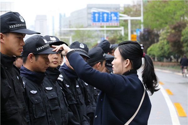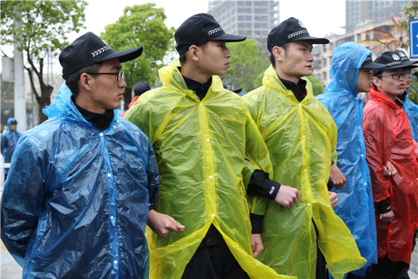 该校150名志愿者于当天上午6点30分到达“汉马”路线楚河汉街站,维护楚河汉街万达广场路段的活动秩序。持续不断的降雨打湿了他们的帽檐与衣领,但风雨阻断不了志愿者们为“汉马”加油出力的心。活动期间,行人不断经过,为保持路口的畅通,志愿者们热心为行人提供最佳的出行方案。在长达4个小时的服务中,志愿者们轮流换班,保持着体力。校团委书记吴艳、副书记邱玉添以及老师王康也全程陪伴志愿者,关注该校志愿者的安全,并竭力配合武汉市警方对志愿者安保工作的安排。