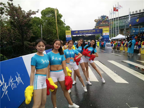 图为为“汉马”助阵的啦啦操队员们