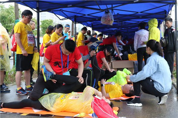 图为“汉马”志愿者们正在接受培训