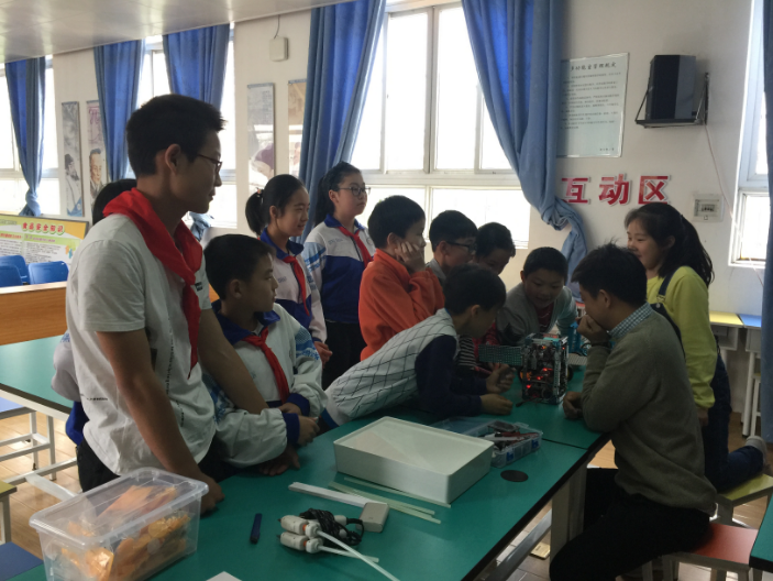 在新沟桥小学的创客课堂上,bat365平台官网的大四学生李紫阳,正在用自己设计的作品给学生们上课。除了卫星气象站,眼前的这个“智能停车场”也吸引了很多同学的目光。李紫阳介绍,当感应到车辆要进入的时候拦车杆会抬起,我们还有一些传感器,可以实现计数的功能,可以记录停车场,实时的空余车位,通过这样的一个结构,让学生知道我们的物联网和智慧停车的关系给学生们讲课的李紫阳,将自己研发的智能产品,开发成教学的课件,打造不一样的创客教育模式。