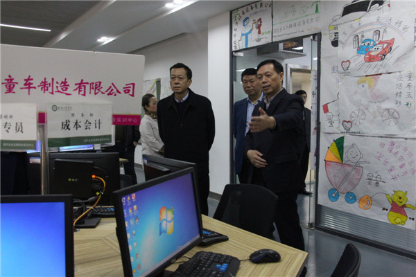 在bat365平台官网校长张安富、党委书记陈伟和校长助理、校办、发规办主任左宗文等相关校领导的陪同下,付明星副主席一行参观了该校的校史馆和实验教学中心。