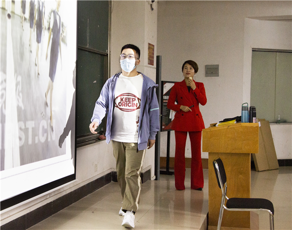 随后,常云老师围绕站姿、坐姿、走姿、目光、微笑五个方面详细介绍了基本的礼仪要求,并在现场对站姿、坐姿、走姿依次做了示范,同时邀请在场的学生上台展示学习成果。
