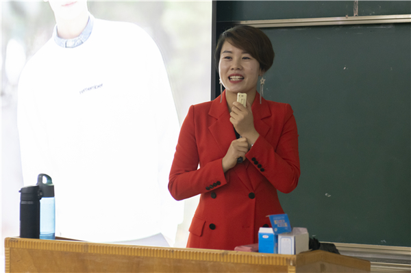 常云老师借助男女两组人物图片,围绕发型、着装、饰品等方面向同学们详细讲解了如何对个人形象进行管理。她介绍,女士职业形象要求露出光洁饱满的额头,突出明亮灵动的眼睛,发型尽量保持整洁与简单;在妆容上,可利用粉底营造出好气色、用腮红增加立体感、用口红打造精气神,眉毛要干净有型、眼妆明亮有神;在着装上,要确保时间、地点、目的相符,并且注意不同场合的服装搭配。“在工作场合上要做到干练得体,在社交场合上做到优雅精致,在休闲场合上做到时尚个性。”男士职业形象的关键点则是保持发型整齐,西装的最后一粒纽扣不扣,衬衫袖口要保持干净整洁,领带与西服颜色、皮鞋与西服颜色要相协调,并且皮鞋必须擦亮等。